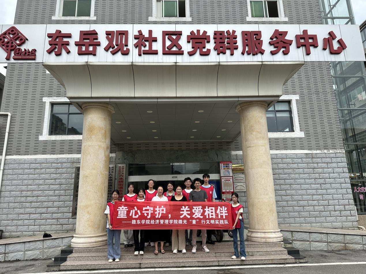 为深入落实“时代新人铸魂工程”部署要求,扎实落实“大思政课”综合改革试验区建设要求,推动优质资源下沉新时代文明实践中心,培养学生勇于担当、乐于奉献、吃苦耐劳的拼搏精神。经济管理学院8名学生志愿者组成的微光“童”行文明实践队,由学团办副主任朱芳、班主任李文靖、资助中心邓玲三位老师带队,于2024 年 6 月 20 日,前往临川区六水桥街道东岳观社区新时代文明实践站开展“童心守护,关爱相伴”志愿服务活动。