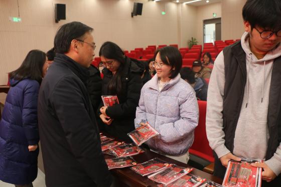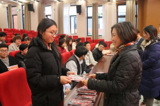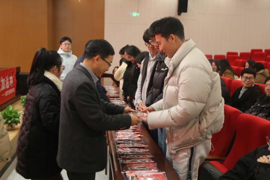 在发放考研礼包环节,各位老师亲手将考研加油包送到每位学生手上,每一份加油包都寄托着学院对考研学子的亲切关怀与殷殷祝福。同学们也对此表示感谢,他们将牢记嘱托,以最佳状态迎战考研。