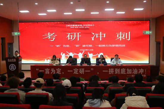 为助力考研学子坚定备考信心,提振士气与决心,缓解考研压力,2024年12月19日下午3点,经济管理学院于经管楼报告厅开展考研送温暖活动。参会人员有经济管理学院行政负责人李宏彪、党总支负责人付树农,各专业负责人王玉伟、罗磊磊、章宸川,21级毕业班辅导员李昕以及经管学院考研学子。活动由经济管理学院就业秘书尧珏老师主持。