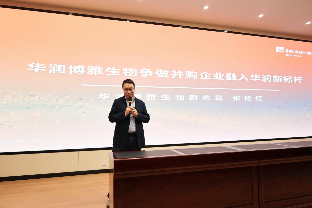 张栓红总裁以“华润博雅生物——争做并购企业融入华润新标杆”为主题,开展了一场精彩纷呈的分享,他详细讲述了华润医药收购博雅生物后,华润博雅生物进行精神重塑、业务重塑、组织重塑和文化重塑这四个关键层面所进行的深刻改革过程。