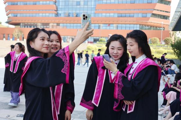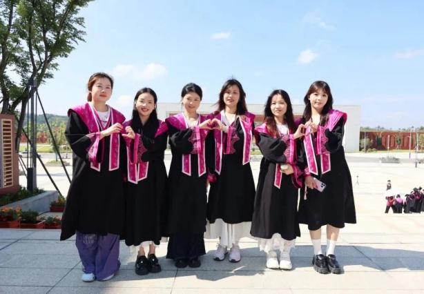 在合影环节,师生们并肩而立回忆着过去的点滴,从初入校园的懵懂青涩到如今的从容成熟,校园里的一草一木都默默见证着你们的蜕变与成长。当快门声响起,学士帽如轻盈的飞鸟般高高抛向蓝天,灿烂的笑容与飘扬的帽穗相互映衬,此时你们就是校园里最绚丽的风景。