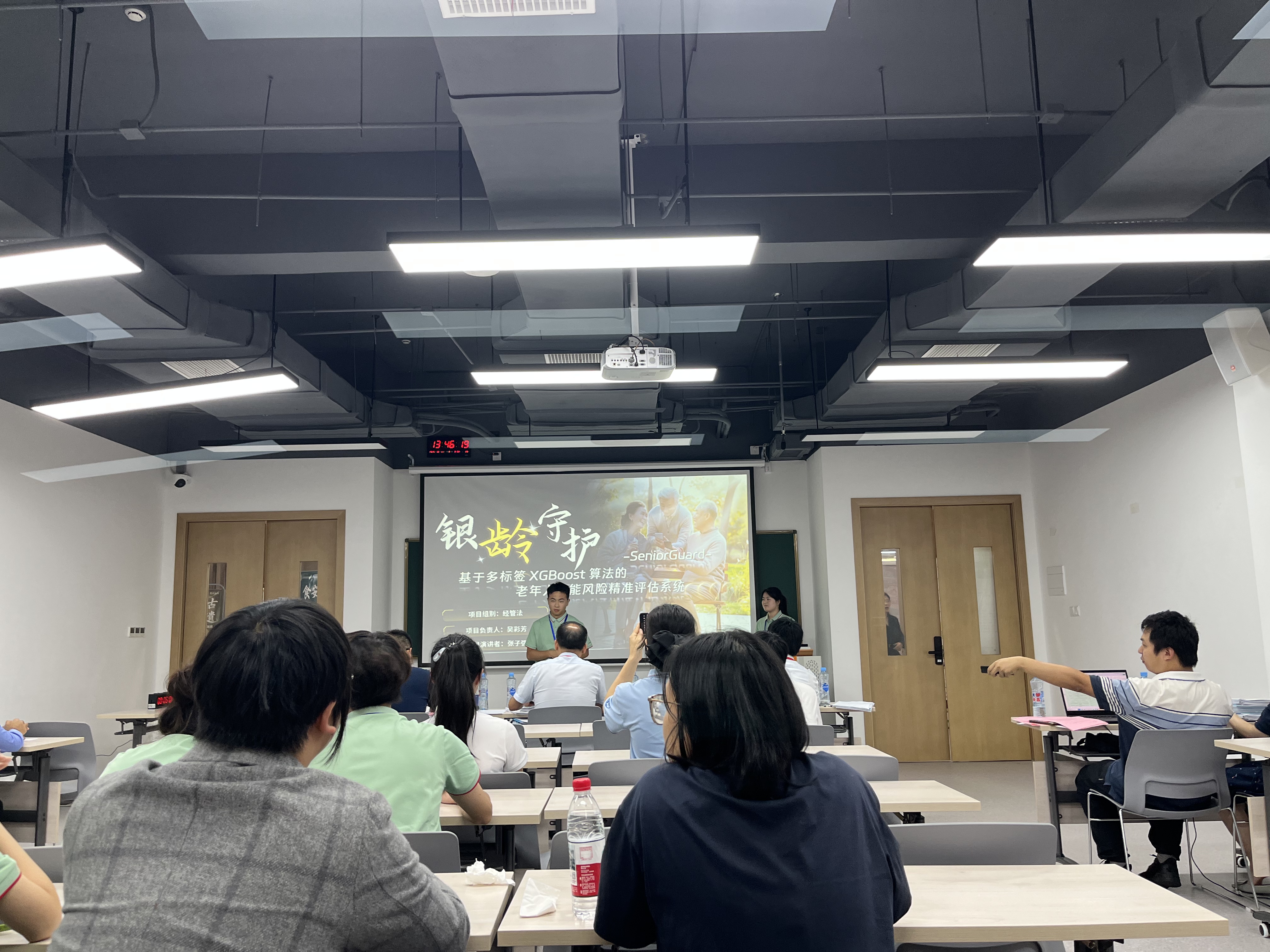 经管学院团队由大数据管理与应用、软件工程、国际经济与贸易专业同学组成,聚焦“银龄失能风险评估”这一社会命题,充分发挥专业优势,不仅构建出AUC超0.9的多标签XGBoost模型,还开发出适老小程序并投入社区试点。这不是纸上谈兵,而是技术回应民生关切,用创新诠释青年担当,实现“从算法到服务”的全链条实践。这种“技术+人文+管理”的交叉实践,正是新文科所倡导的复合型人才培养方向。同学们用代码写关怀,用数据暖人心,真正做到了“技术有温度,人文有支撑”。这支跨学科团队用实际行动证明,当科技与人文相遇,便能绽放出最美的创新之花。