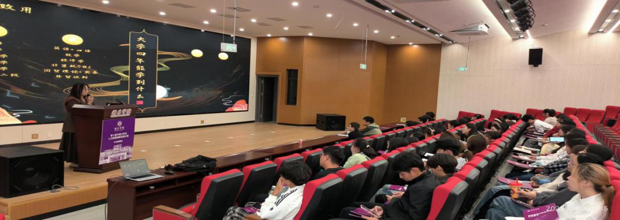 胡敏丽以“国贸认知”为题,结合自己从一名普通的国际贸易专业学生,一步步成长为行业业务精英的亲身经历,为学生们呈现了一条亲切且励志的成长路径,生动阐释了国际贸易理论知识如何与具体业务操作相结合,并鼓励在场新生珍惜大学时光,扎实打好专业基础,同时积极参与实践,不断提升外语沟通、商务谈判及跨文化交流等综合能力。