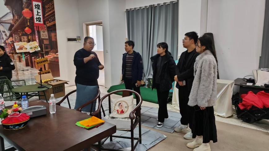 随后,团队在龚莉陪同下赴赣江新区产教融合公司调研,实地考察数字营销产教融合基地与抖音学院运营情况。公司经理褚克伟介绍了基地建设进展,并引导参观教学现场与实战直播间。