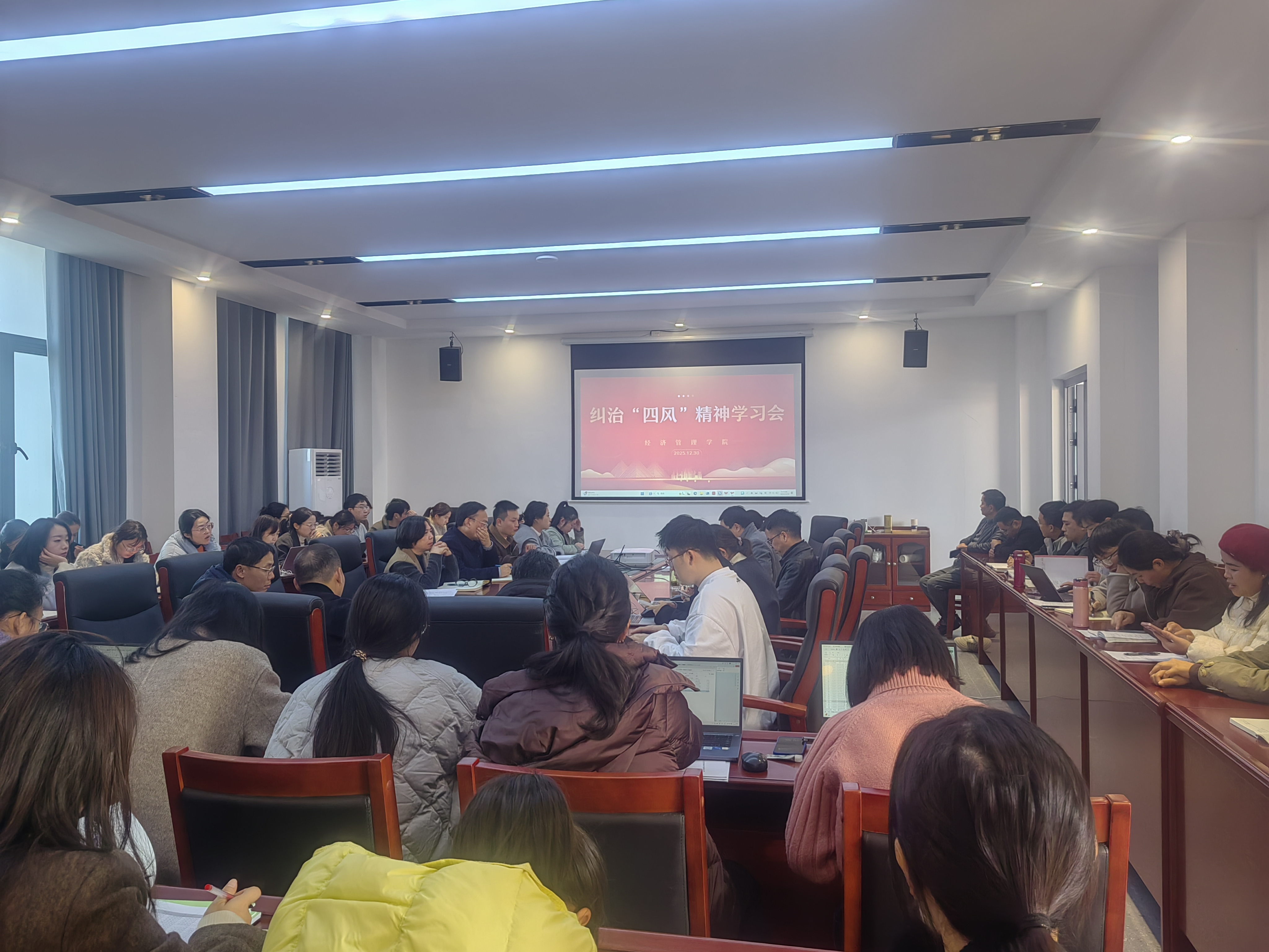 为深入学习贯彻习近平总书记关于加强党的作风建设的重要论述,锲而不舍落实中央八项规定精神,切实筑牢全院教师廉洁自律思想防线,12月30日,经济管理学院党总支召开纠治“四风”精神学习会,全体教职工参加会议。
