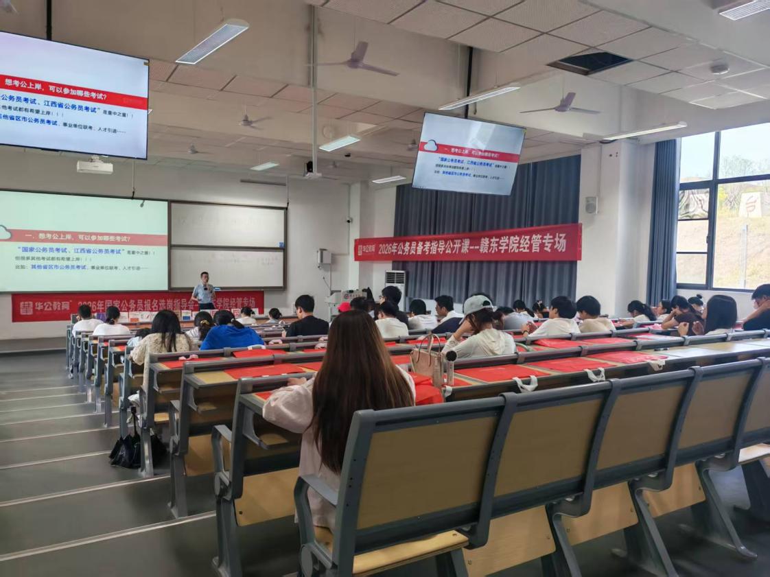 为切实助力2026届毕业生明晰国家公务员考试备考方向、破解就业备考难题,提升应试竞争力,10月16日,我院邀请抚州华公为2026届毕业生开展“国家公务员备考指导公开课”。众多意向考公的毕业生踊跃到场参与,现场学习氛围浓厚,互动积极。